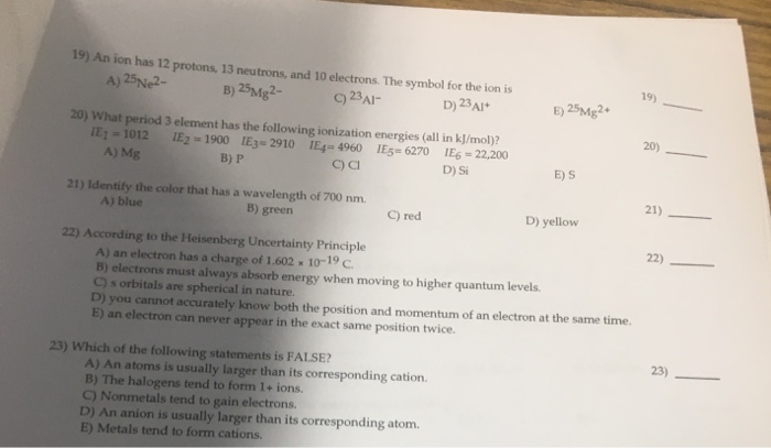 Solved 19 An Ion Has 12 Protons 13 Neutrons And 10 Chegg Com